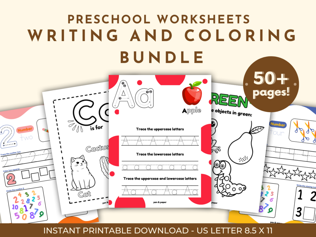 Preschool Worksheet - Writing and Coloring Bundle
